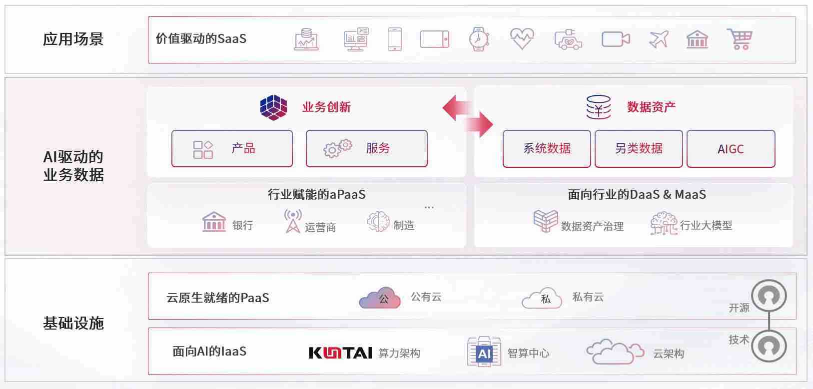 数字时代,,,,围绕企业数字化转型的关键要素,,,,OKPay数码开创性的提出数云融合战略和技术体系框架,,,着力在云原生、、、数字原生、、、AI原生和信创产业上架构产品和服务能力,,,,为处在不同数字化转型阶段的快消零售、、、汽车、、金融、、、、医疗、、、、政企、、、教育、、、运营商等行业客户提供泛在的敏捷IT能力和融合的数据驱动能力,,构建跨界融合创新的数字业务场景和新业务模式,,,,助力企业级客户建立面向未来的核心能力和竞争优势,,,全面推动社会的数字化、、、、智能化转型升级。。。